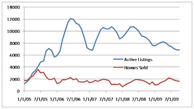 2. Homes Sold as a percentage of Active Listings has finally hit 20% or more in the last several months. For all of 2006, 2007, and 2008, this percentage has been well below 20%.